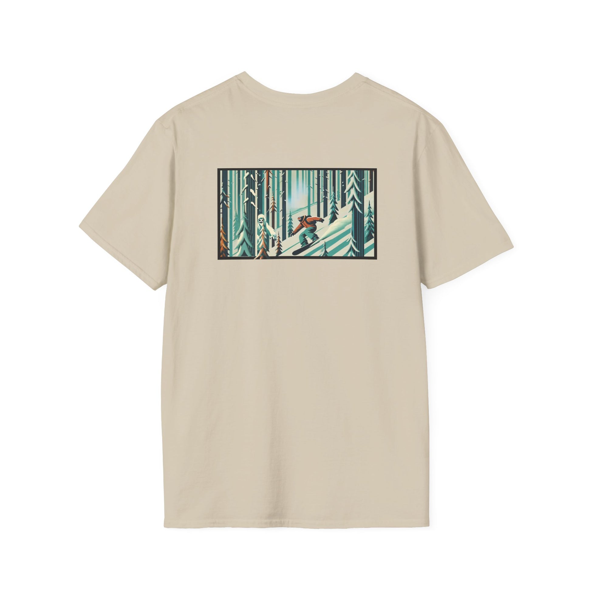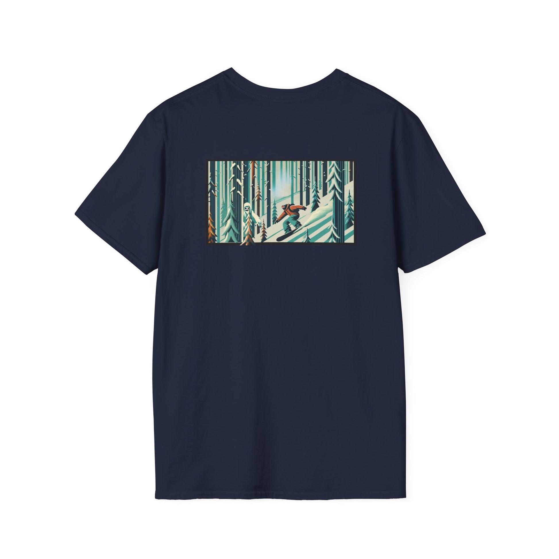 Snowboarder in Forest with Yeti